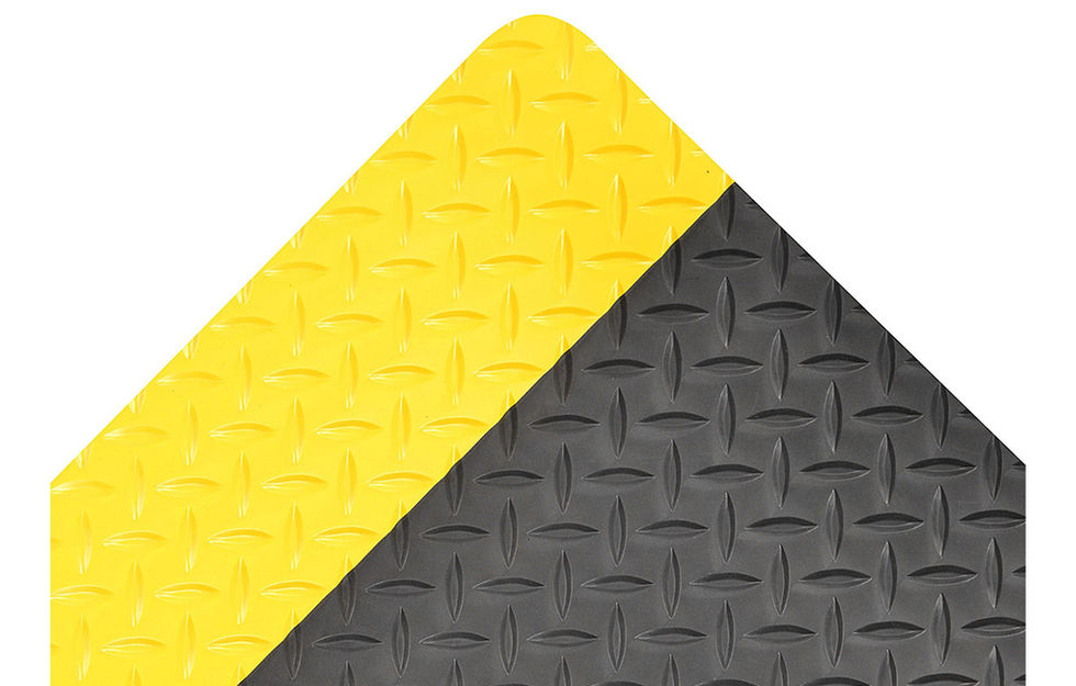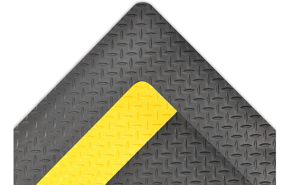 Dura Trax Grande™ is a 1-inch thick, heavy-duty, anti-fatigue floor mat that represents the ultimate in comfort and durability for today's industrial environments. It combines a rubber top surface with a dense sponge backing using the exclusive Notrax® UniFusion™ bonding process. The resulting finished product is virtually one piece eliminating any possibility of lamination. The rubber top surface provides a noticeably smoother and more comfortable work surface and a diamond plate design offers greater slip resistance and is easy to sweep or clean. Like all Notrax® laminate mats, Dura Trax Grande™ features RedStop™ non-slip backing. RedStop™ eliminates slipping and sliding of Notrax® mats on all types of smooth floor surfaces, such as vinyl composite tile, painted or epoxy-coated concrete.
